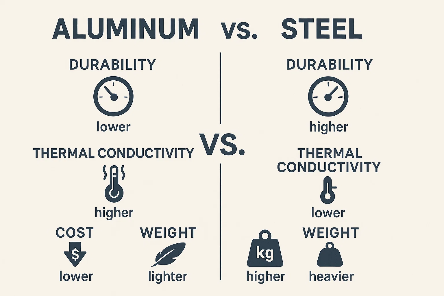 Bei der Auswahl zwischen Aluminium und Stahl richtet sich die Entscheidung auf einige kritische Unterschiede, die sich auf die Produktion auswirken.