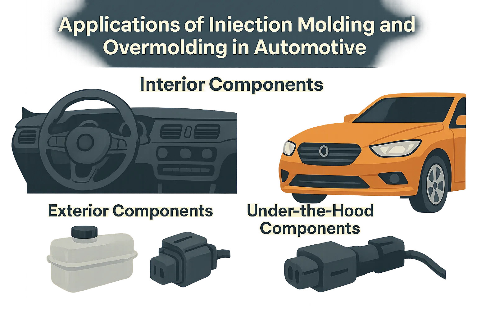 Injektionsleisten und Überlagern sind ein entscheidender Bestandteil der Automobilmanufets. Sie ermöglichen die Schaffung komplexer, leichter und langlebiger Komponenten in den Innen-, Außen- und Unter-Hut-Systemen eines Fahrzeugs.