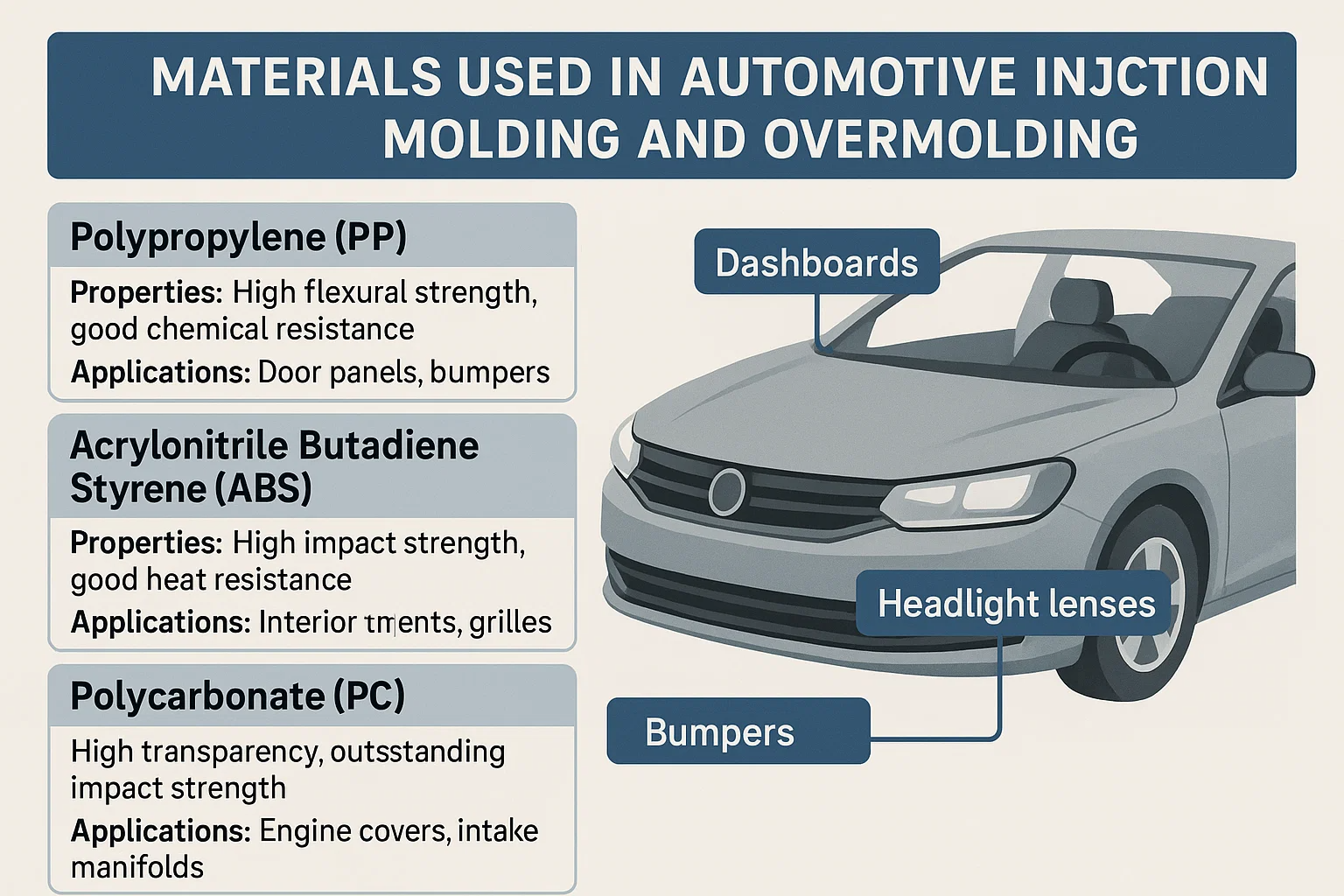 Gemeinsame Kunststoffe und ihre Automobilanwendungen