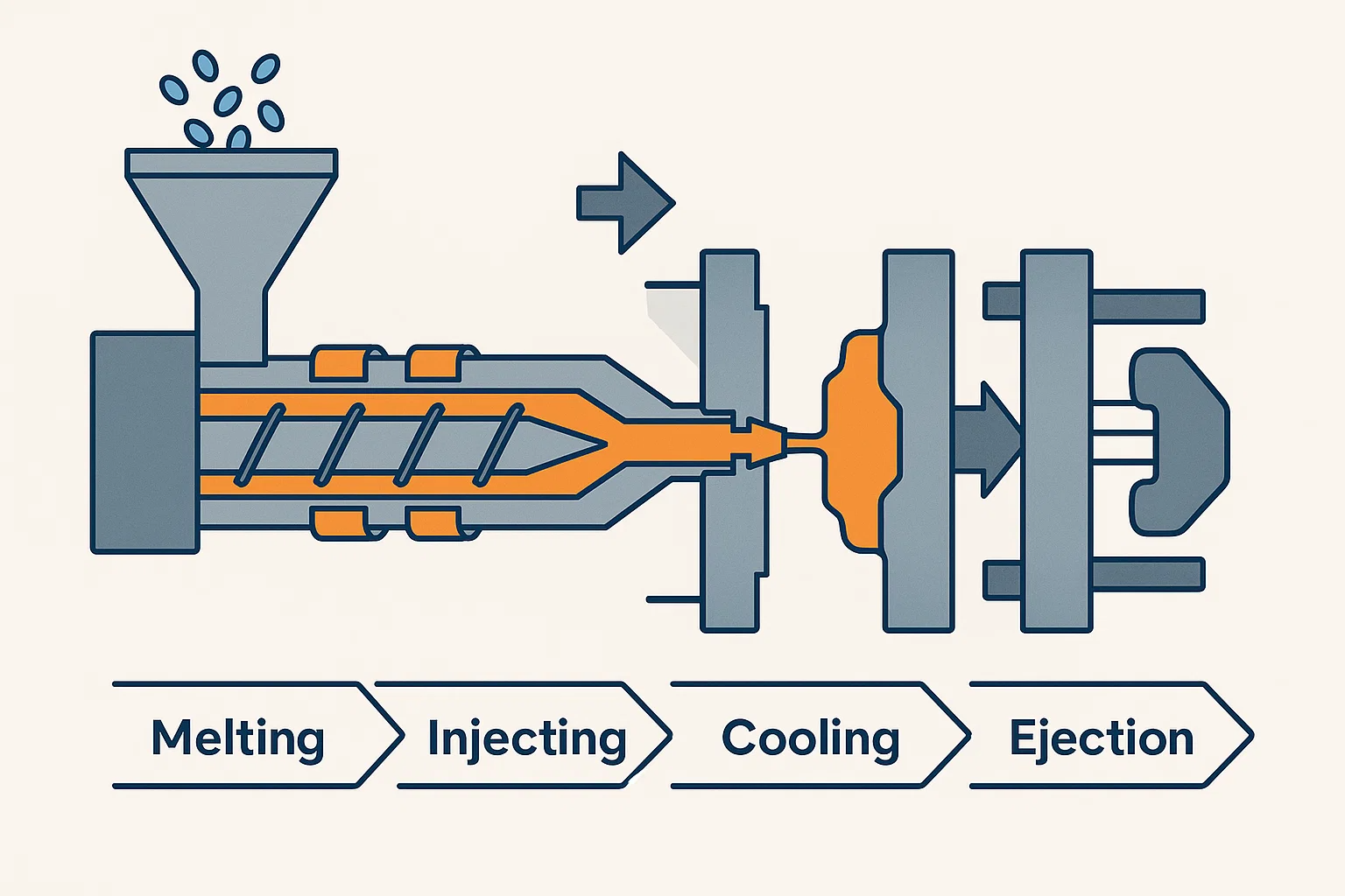 Wie es funktioniert: Schmelzen, Einspritzen, Kühlen und Auslösen