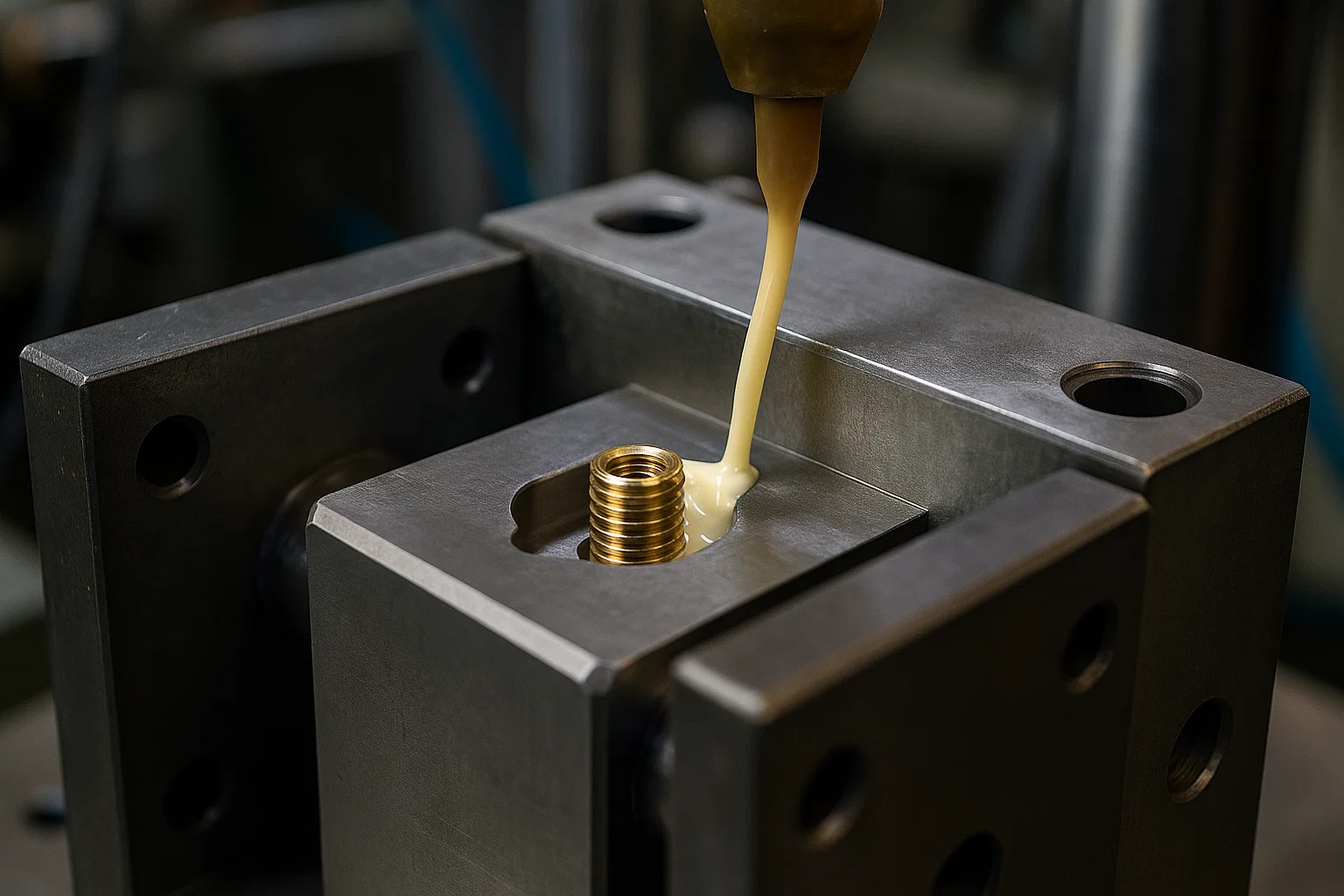 Vorbereitung einfügen: Einsätze, die aus verschiedenen Materialien wie Metall, Keramik oder sogar vorgezogenen Kunststoffteilen bestehen können. Dies kann das Reinigen, Vorhitzen oder die Anwendung eines Klebstoffs/Primers umfassen, wenn eine verbesserte Bindung erforderlich ist.