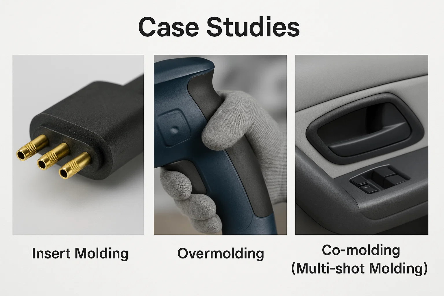Um die praktische Anwendung und die Vorteile jedes Formprozesses zu veranschaulichen, werden wir reale Beispiele untersuchen, bei denen das Einfügen von Formteilen, Übermolding und Co-Molding erfolgreich eingesetzt wurde, um innovative und effiziente Produkte zu schaffen.