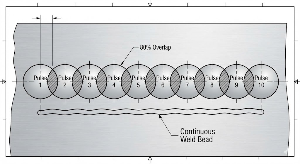 - Kontinuierliches/überlappendes Schweißen: Techniker überlappen jeden „Punkt“ um 70-80 % um eine nahtlose, solide Metallperle zu schaffen.