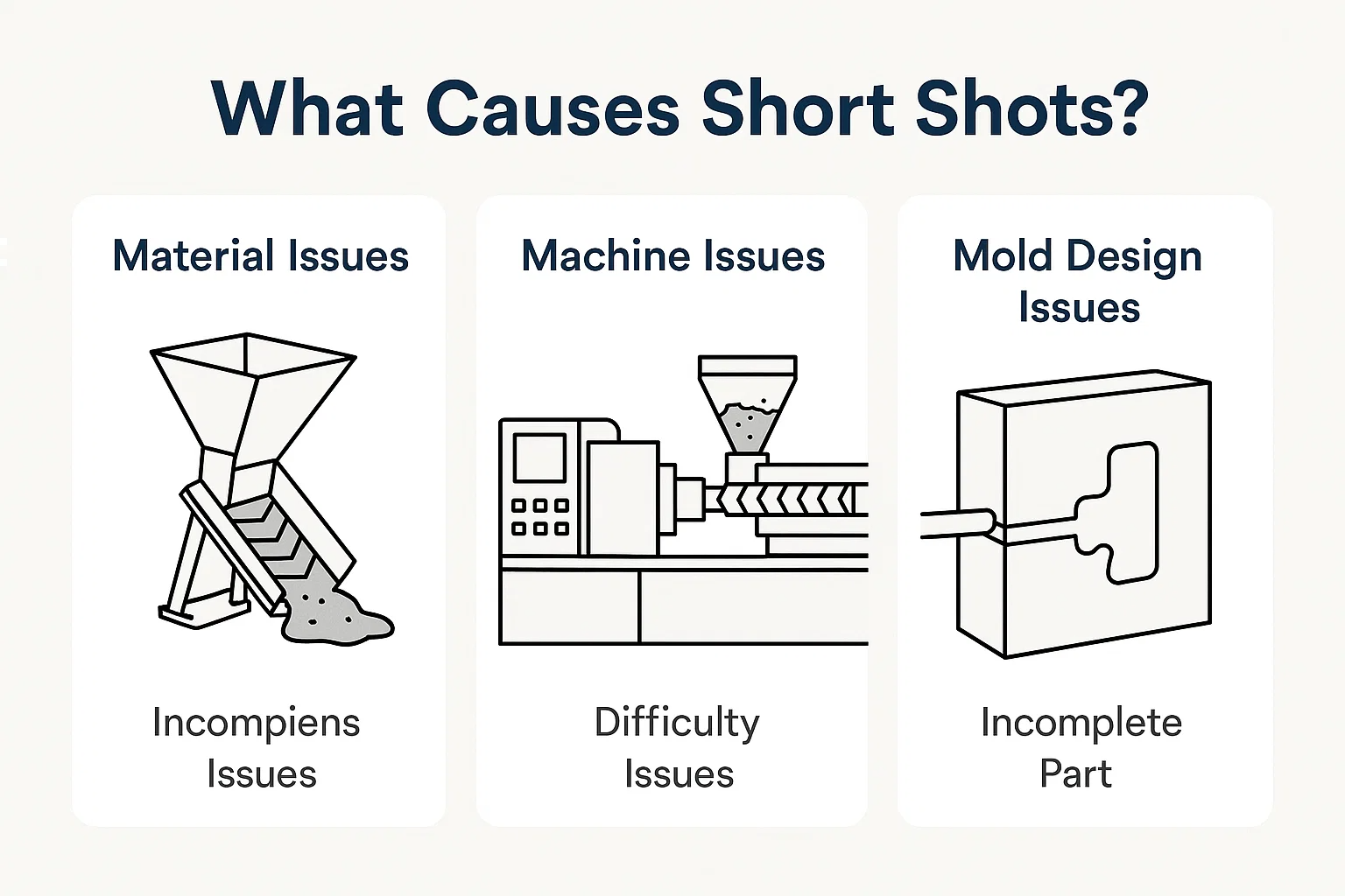 In der Welt der HerstellungAnwesend Injektionsformung ist ein leistungsstarker Prozess, der verwendet wird, um alles von Autohboards bis hin zu Flaschenverschlüssen zu erstellen. Trotz der modernen Technologie können Mängel auftreten. Eine der häufigsten und frustrierendsten von diesen ist die kurzer Schuss . Dieser Defekt sieht nicht nur schlecht aus. Es schafft einen nicht funktionsfähigen Teil, der zu verschwendeten Materialien, Produktionsverzögerungen und höheren Kosten führt. Das Verständnis, warum kurze Aufnahmen auftreten und wie sie behoben werden können, ist für alle, die an der Herstellung von Plastikpartien beteiligt sind, von wesentlicher Bedeutung. Dieser Leitfaden führt Sie durch die Ursachen, Lösungen und Präventionsmethoden, mit denen Sie jedes Mal qualitativ hochwertige, vollständige Teile produzieren können.